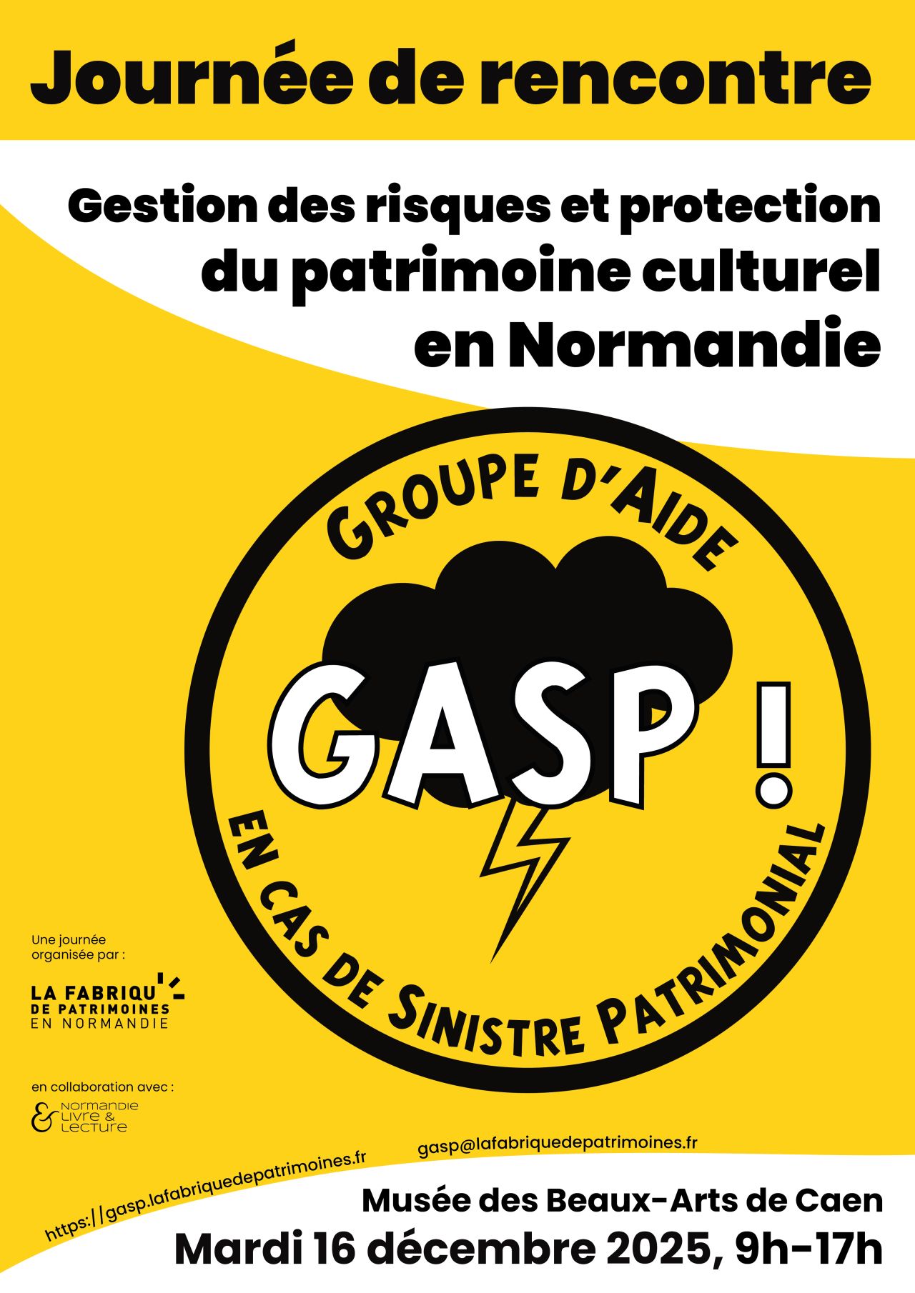 Le 16 décembre 2025, la Fabrique de patrimoines en Normandie, en collaboration avec Normandie Livre et Lecture, organise une journée de rencontre sur la gestion des risques et la protection du patrimoine culturel en Normandie au musée des Beaux-Arts de Caen.